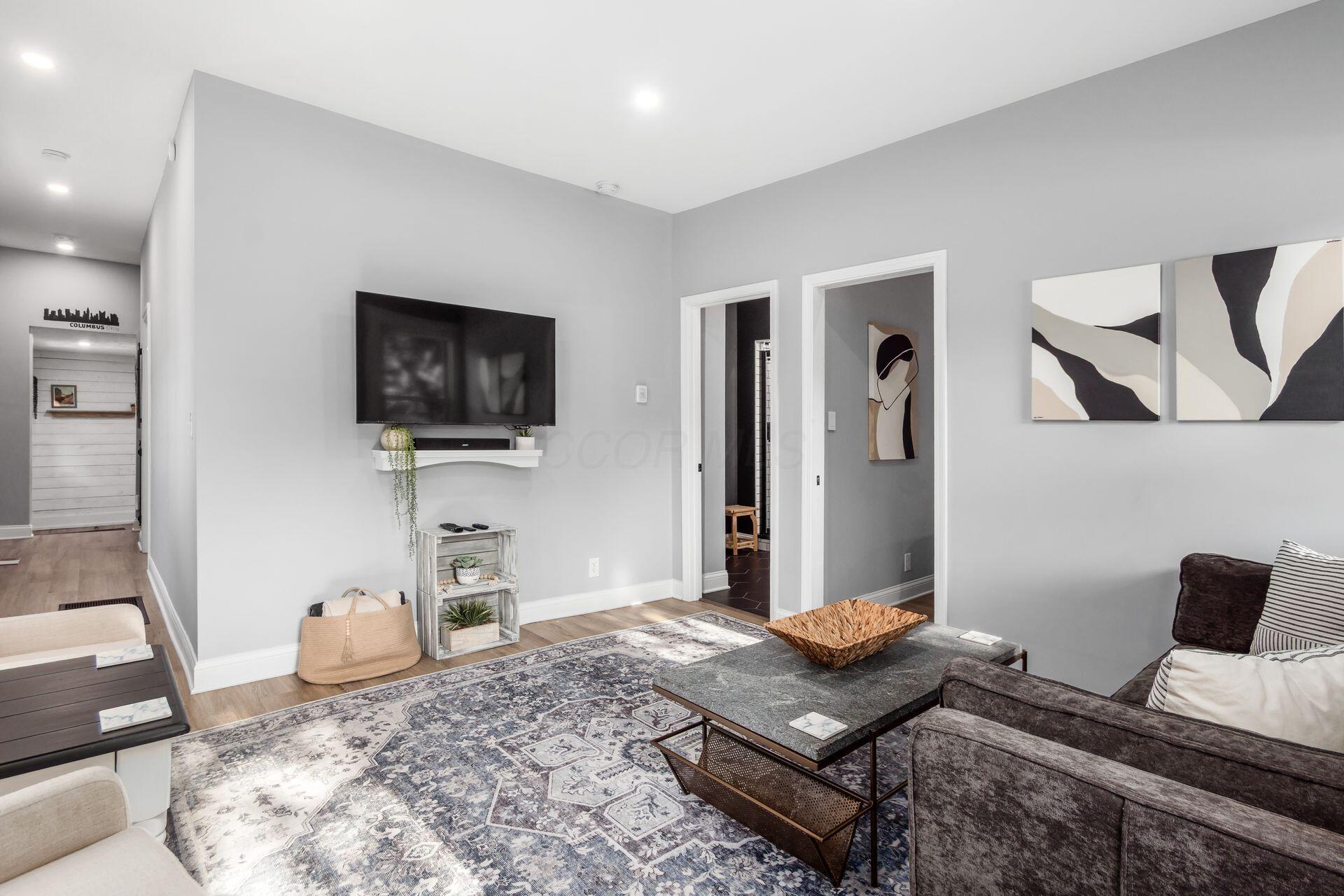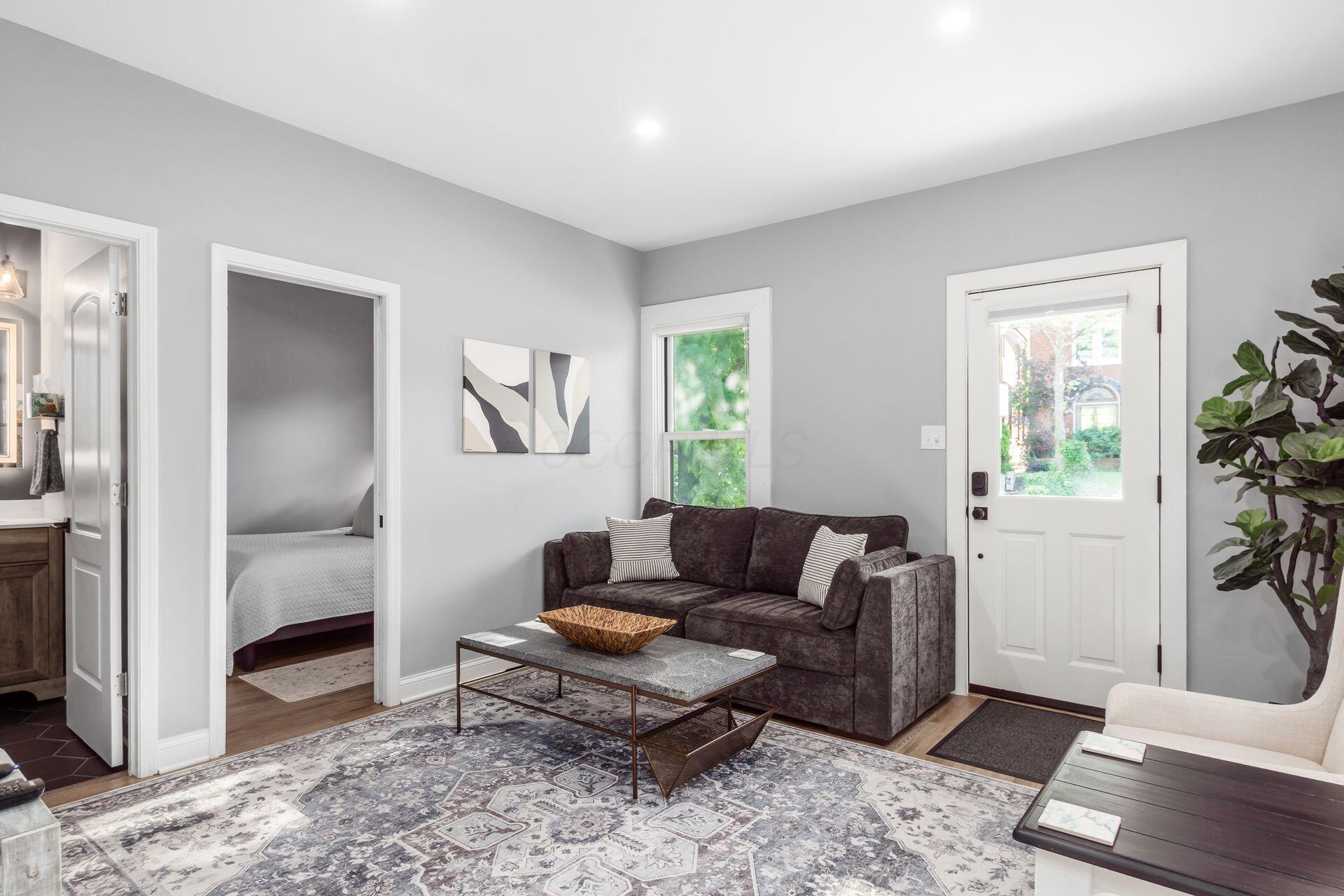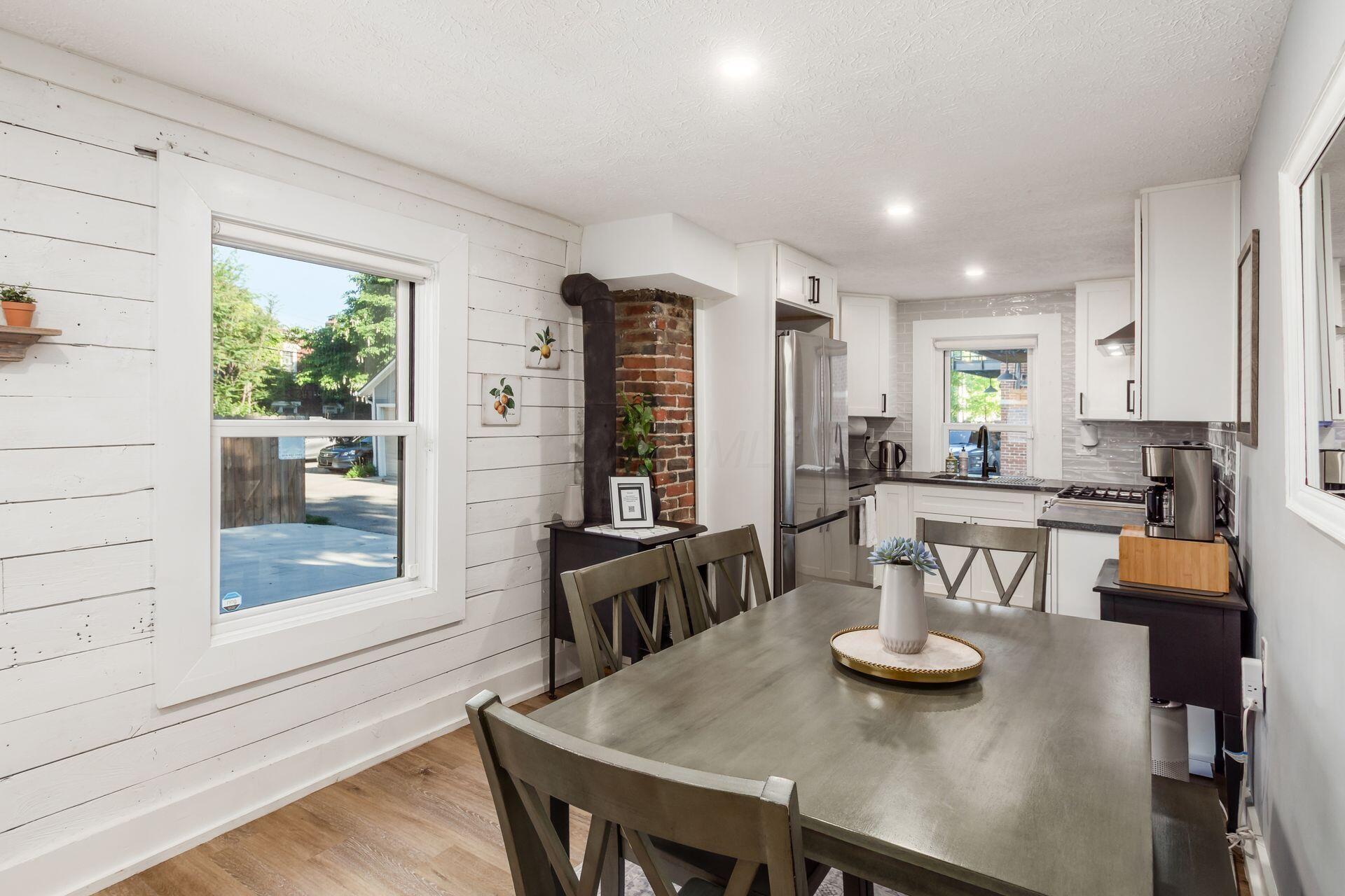 $17Welcome to 853 Summit Street - a beautifully renovated 1880s farmhouse in the heart of Italian Village, one of Columbus's most sought-after historic neighborhoods. This fully updated 3-bedroom, 2 full-bath home blends original character with a complete top-to-bottom renovation, offering a truly turnkey living experience steps from the Short North and Downtown Columbus. The dramatic charcoal exterior with natural wood accents sets the tone from the street. Inside, the main level features Luxury Vinyl Plank floors, exposed brick accents, a bright living room, and a chef's kitchen with white Shaker-style cabinetry, granite countertops, a subway-tile backsplash, and a full stainless-steel suite, including a gas range. A dedicated dining area flows naturally off the kitchen. The first-floor primary suite offers a private en suite bath with a walk-in shower featuring subway tile and upscale fixtures. A second full bath, additional bedroom, and main-floor laundry - tucked behind a sliding barn door - complete the first level. Upstairs, the loft is the home's signature space. Vaulted ceilings with wood accents frame a generous lounge area and the third bedroom, adding flexibility and character that no apartment can match. The backyard is the real story. Fully fenced and genuinely oversized for the neighborhood, the yard features a covered cedar porch, a dedicated fire-pit seating area, and a manicured lawn, all of which are exceptionally rare in Italian Village. Three off-street parking spaces are included. Walk to the Short North, minutes to Downtown, Nationwide Arena, and the Convention Center - with easy I-670 access to the airport. Please read the agent-to-agent remarks regarding pets.